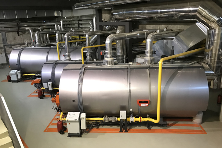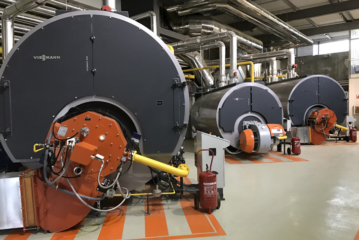 集中供暖廠配備了 2 臺功率 58 MW 的 VKLM-50 水管式鍋爐,總供熱能力為 128 MW,可滿足 25 萬居民的需求。這兩臺鍋爐上安裝了 4 臺功率 32.2 MW 的 TBR 32 GL ME FGR 型號的百得混合燃燒器,可以滿足以下運行條件: